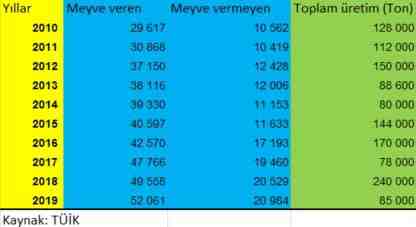 TÜİK verilerine göre 2019 yılında fıstık üretimi yüzde 64,4 ile büyük bir kayıp yaşamış ve Türkiye genelinde 85 bin tona kadar gerilemişti.