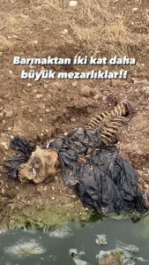 Alfa Derneği sosyal medya hesaplarından yaptıkları paylaşımda, “Barınakta canlı hayvan sayısından çok ölü hayvan var. Mezarlıkların yanı narkotik iğneler ve halatlarla dolu. Hiçbir kapta mama ya da su yok, hepsi boş. Barınakta çok fazla yavru köpek var. Nereden aldınız, nasıl topladınız bu kadar yavru köpeği buraya? Birçok ölüm çukuru var. Burada her yer üzeri açık hayvan mezarı ile dolu. Buradaki mezarlıklar barınağın kendisinden büyük. Bu canlara yapılanlar reva mıdır? Her yer kemik dolu. Koca arazi hep kazılı ve içlerinde bir sürü hayvan ölüsü var. Barınakta ortalama 100-150 hayvan olduğunu tahmin ediyoruz. Bu düşük rakama rağmen hepsi aç ve kapları boş. Sayın yöneticiler, göreviniz canlarımızın sağlığını ve refahını sağlamak. Görevinizi yapmaya davet ediyoruz” ifadeleri yer aldı.