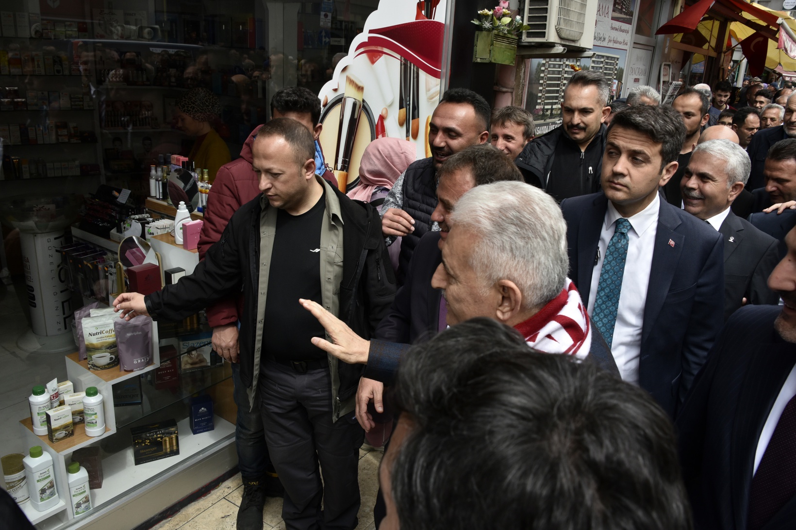 Yıldırım daha sonra Atatürk Caddesinde esnaf ziyaretinde bulundu. Ziyaret sırasında bir vatandaş Binali Yıldırım’a türkü söyledi. Vatandaşı dinleyen Yıldırım türküye eşlik ettiği anlar renkli görüntülere sahne oldu.