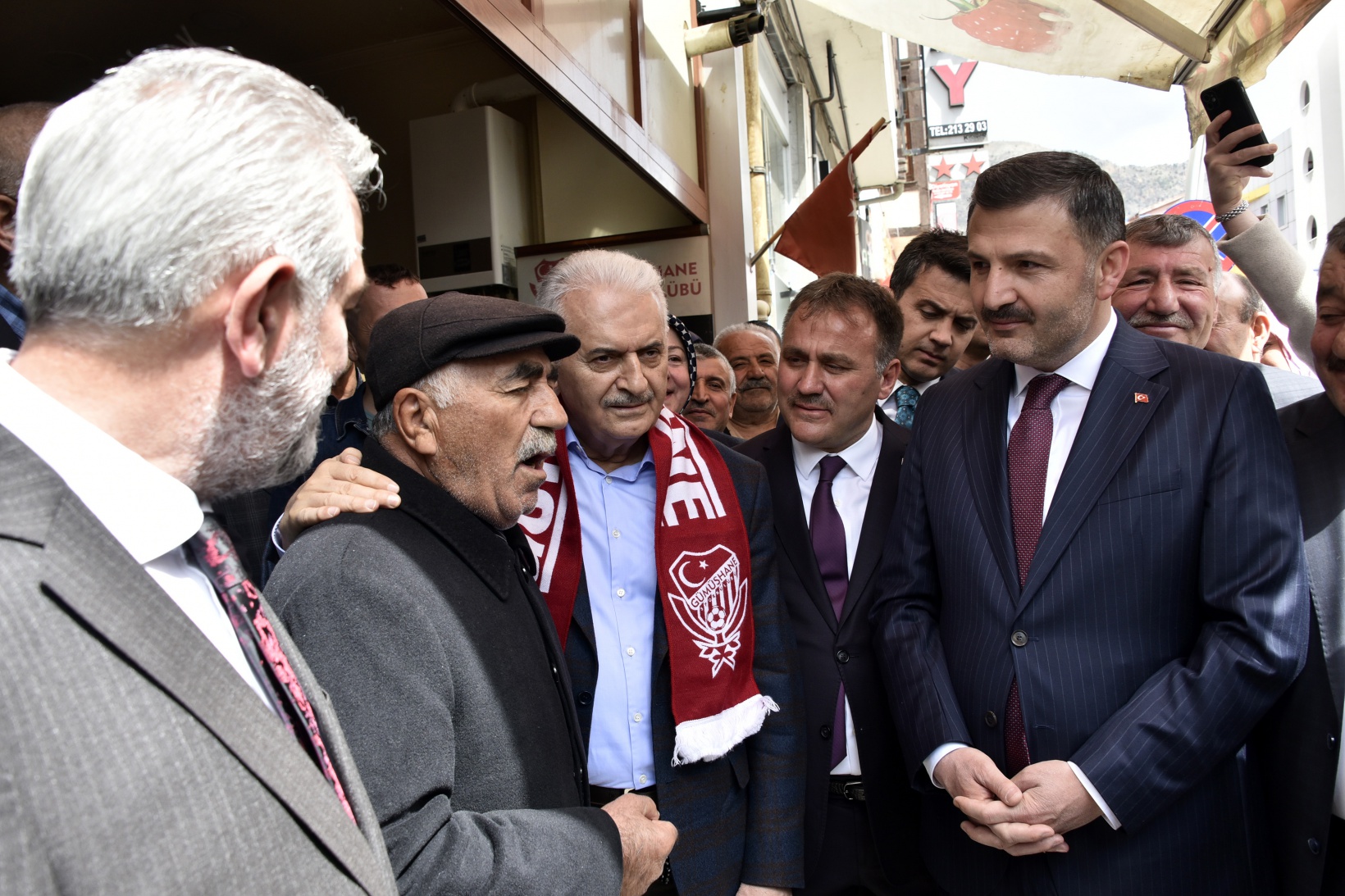AK Parti İl Başkanlığı önüne gelerek burada kendisini bekleyen vatandaşlarla buluşan Yıldırım, bir süre vatandaşlarla sohbet etti.