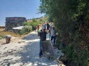 Gümüşhane’nin Şiran ilçesine bağlı Pelitli köyünde, devlet-vatandaş iş birliği ile köy içi parke döşeniyor.