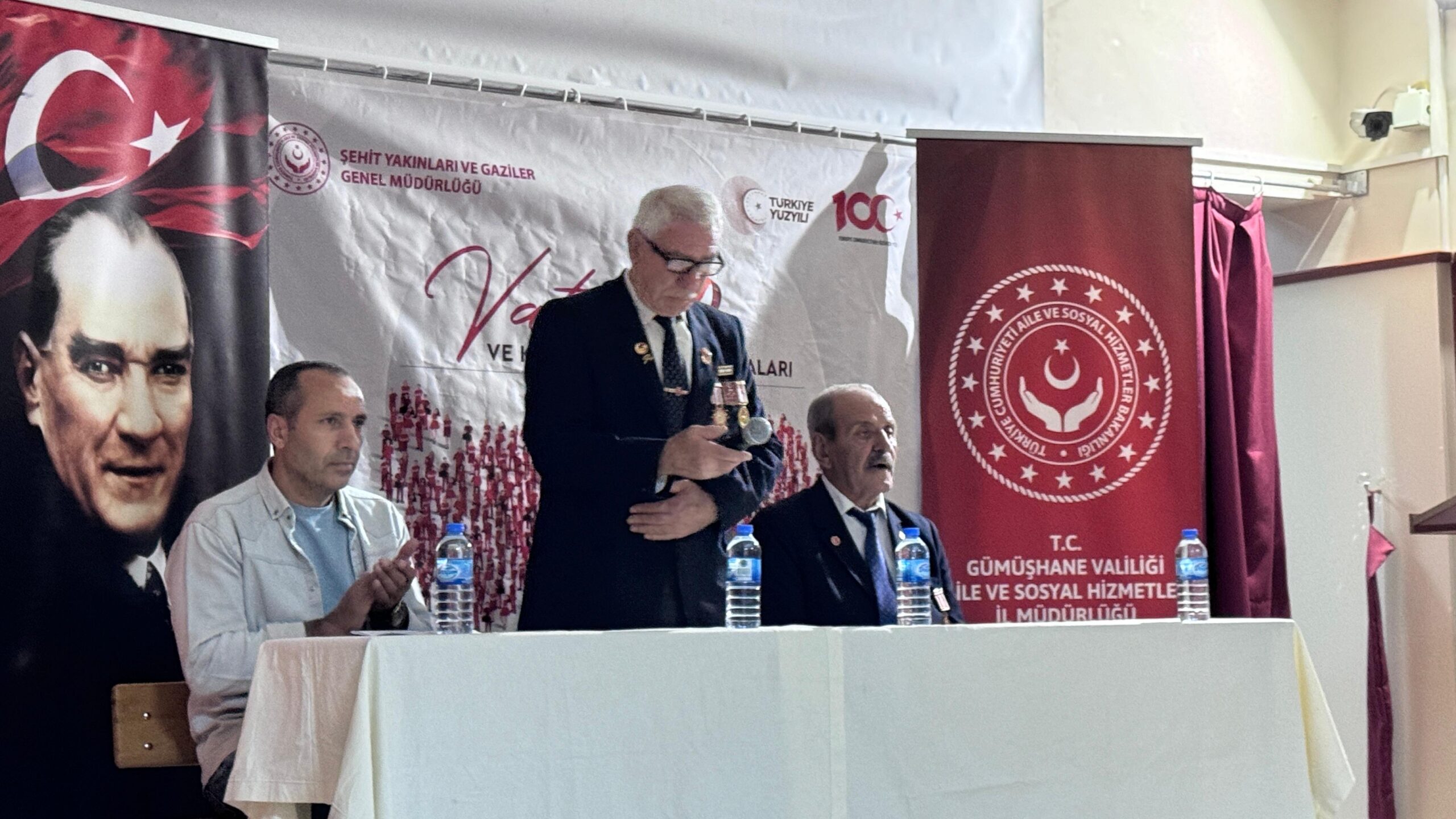 Gümüşhane’de “Vatan ve Kahramanlık Buluşmaları” programı, Dumlupınar Ortaokulu’nda gerçekleşti. Kıbrıs Gazileri ve şehit kardeşinin katıldığı etkinlikte, öğrencilere kahramanlık, vatan sevgisi ve milli bilinç aşılandı. Etkinlikler yıl boyunca devam edecek.