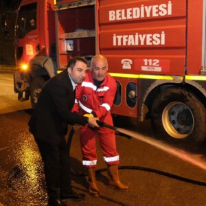 “Göreve geldiğimizde saate bakmadan çalışmaya başlayacağız çünkü Şiran’ın kaybedecek vakti yok demiştik” sözünü hatırlatarak İtfaiye ekipleriyle birlikte temizlik yapan Başkan Kara, Şiran’ın cadde ve sokaklarını temizleme çalışmalarını sürdüren itfaiye ekiplerinin çalışmalarını yerinde inceleyip ekiplere tatlı ikramında bulundu.