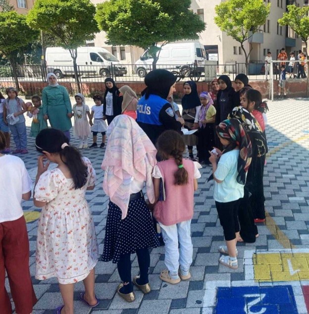 Nesrin Halit Zarbun Anaokulu yönetimi ile eğitim öğretim döneminde yapılacak bilgilendirme faaliyetleri hakkında görüşme sağlanan faaliyetler kapsamında Karaer Mahallesinde kurulan halk pazarı ziyaret edilerek esnaf ve vatandaşlara genel güvenlik, dolandırıcılık ve hırsızlık konularında bilgilendirme yapılarak broşür dağıtıldı.