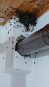 Gümüşhane’nin Torul ilçesine bağlı Dağdibi köyünde yaşayan emekli memur Hasan Ural, bahçeden evine döndüğünde evinin arılar tarafından basıldığını gördü. Pencere önleri, soba borusu ve farklı noktalarda yuva yapan arılar nedeniyle aile, evin içine girebilmek için arıcı kostümü giymek zorunda kaldı.