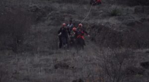 Bilincinin açık olduğu belirlenen hemşire, AFAD ve 112 Acil Sağlık ve itfaiye ekiplerinin zorlu çalışmasının ardından bulunduğu yerden 280 metre indirilerek sağlık ekiplerine teslim edildi.