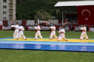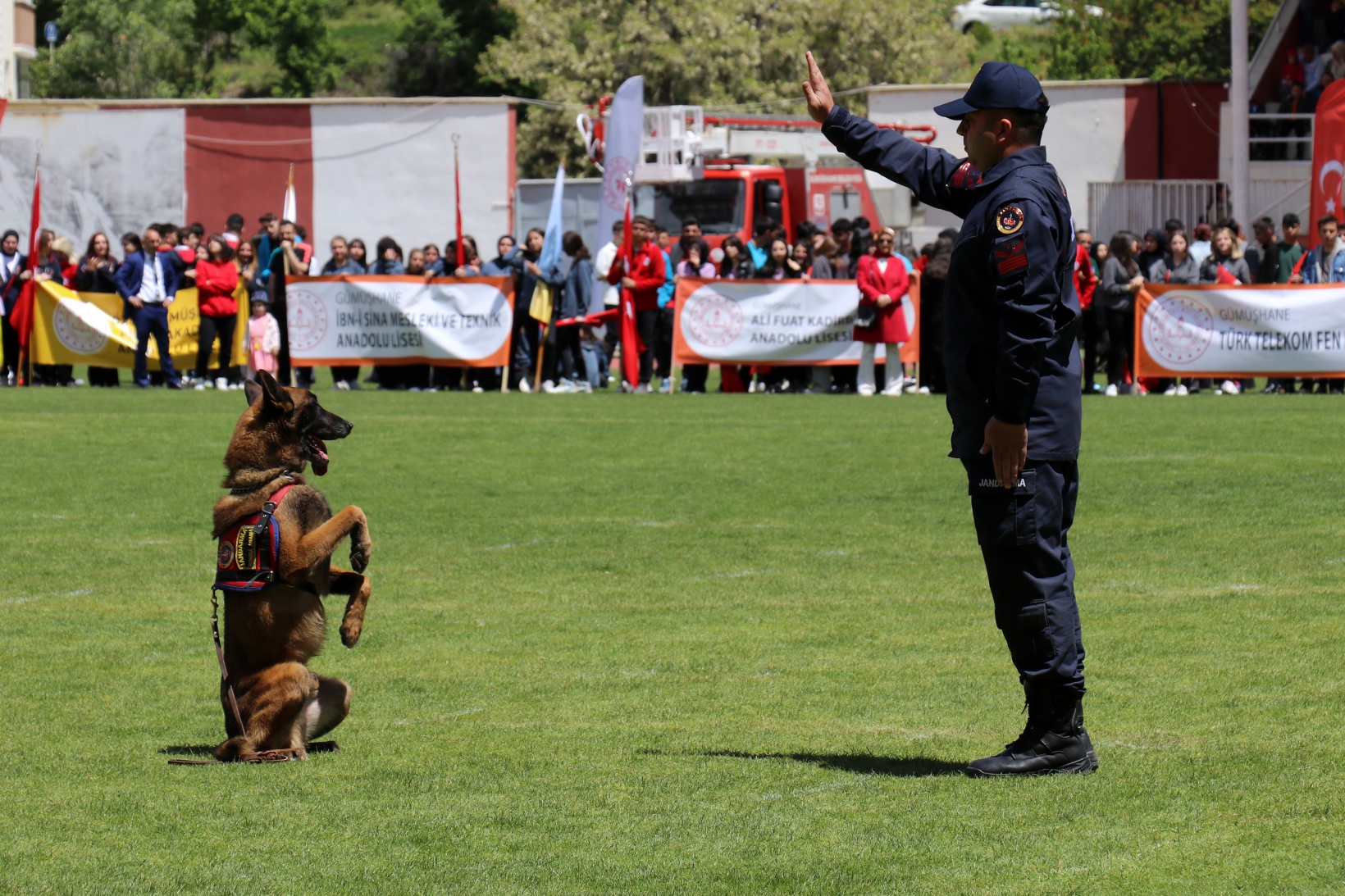 Gençlik ve Spor İl Müdürlüğü ve Gümüşhane Üniversitesi öğrencilerinin Jimnastik, karate, aikido, güreş, judo gösteriyle devam eden programda Jandarma Bomba Arama köpeği gösterisini gerçekleştirdi.
