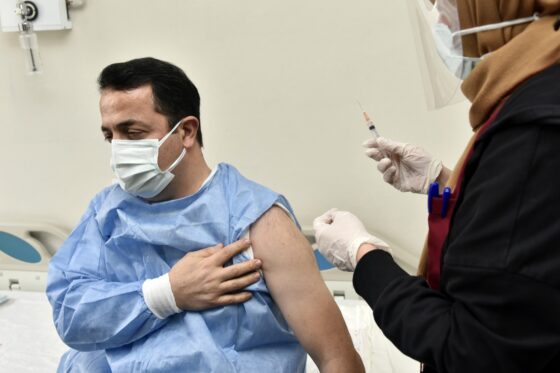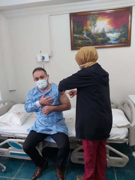 Gümüşhane Devlet Hastanesine gelerek hazırlanan aşı odasında ilk aşıyı vurulan İl Sağlık Müdürü Dr. Engin Pehlivan, “Yaklaşık bir yıldır Covid-19 hastalığıyla değişik platformlarda Sağlık Bakanlığımız, bağlı birimlerimiz ve tüm sağlık personelimizle mücadele ediyoruz. Koruyucu tedbirlerin uygulanması neticesinde belirli bir noktaya kadar bu mücadelemizi sürdürdük ve devam ettiriyoruz. Şimdi bunun bütünleyicisi olarak Covid-19 aşısı ülkemize geldi, gerekli kontroller yapıldı. Bu kontrollerden sonra ilimize nakli gerçekleştirildi. 3 bin doz aşı ilimize geldi. İlk olarak sağlık personeline uygulanacak. Sağlık personeliyle ilgili 35 oda oluşturduk. 35 personel ve 5 hekimin kontrolünde uygulanacak aşılar. Devamında Aile, Çalışma ve Sosyal Hizmetler Bakanlığına bağlı rehabilitasyon ve bakım merkezlerinde uygulamaya geçeceğiz. Risk grubunda yer alan 65 yaş ve üzeri vatandaşlarımızın aşılaması Bakanlığımızın talimatları doğrultusunda aşılanacak” dedi.