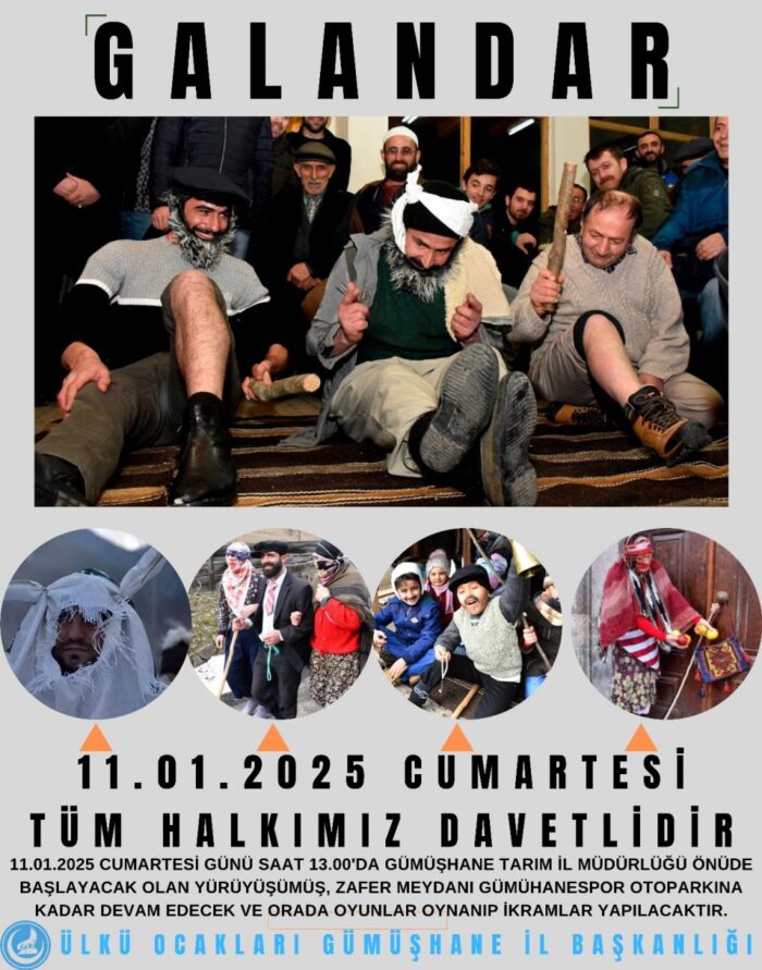 Gümüşhane ve bölgede çok uzun yıllar boyunca özellikle kırsal kesimde yapılan fakat son yıllarda unutulmaya başlanan Galandar etkinliği bu yıl Ülkü Ocakları İl Başkanlığı tarafından kent merkezinde yapılacak.