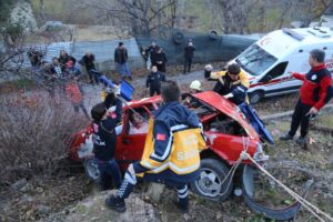 Gümüşhane’de sürücüsünün direksiyon hakimiyetini kaybettiği otomobil, 20 metre yükseklikten şarampole yuvarlandı. Kazada 2 kadın yaralandı.
