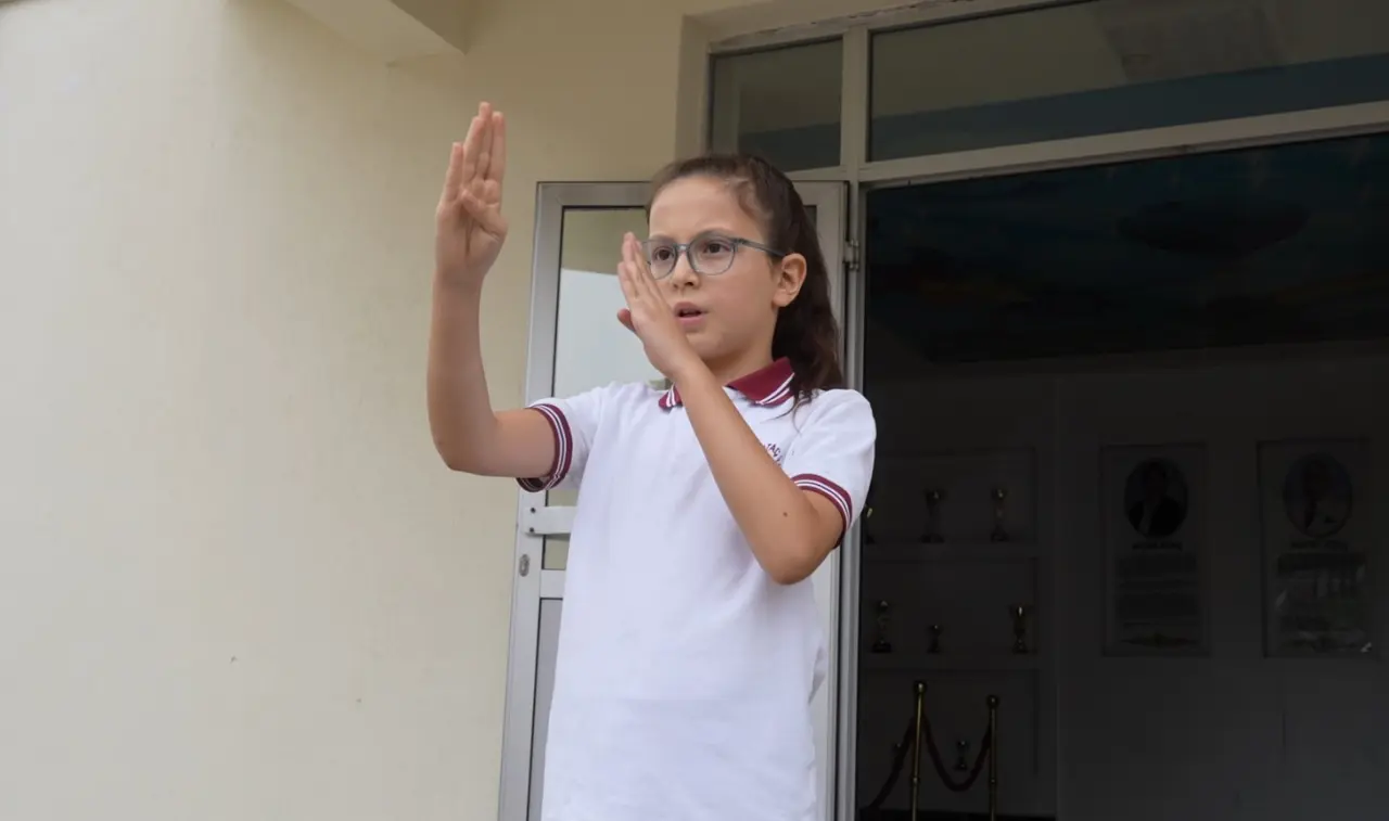 “Her pazartesi ve cuma bayrak törenlerinde İstiklal Marşı’nı işaret diliyle okuyor”