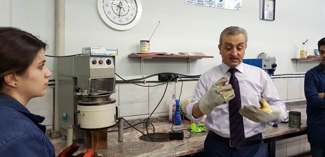 Biraz ilerledikten sonra deney masanın yanında iki gencin bir şeylerle uğraştığını gördük. Anladım ki sesler gençlerin bir deney üzerindeki çalışmalarına ait. Her türlü inşaat deneyinin yapılabildiği kapsamlı bir laboratuvarın içinde bulduk kendimizi.