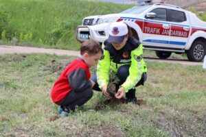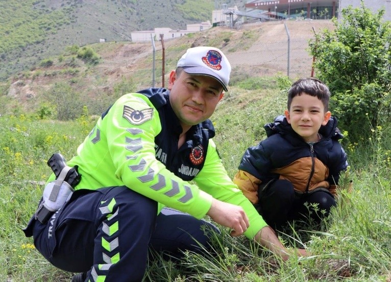Gümüşhane İl Jandarma Komutanlığını ziyaret eden anaokulu öğrencileri, hem trafik güvenliği eğitimi aldı hem de adlarına dikilen çam fidanlarıyla doğaya katkı sundu. Etkinlikte köpek gösterisi ve eğitici çizgi film de çocuklara unutulmaz anlar yaşattı.
