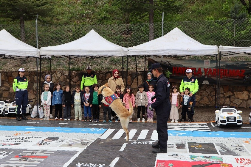 Etkinlikte, çocuklara trafik güvenliği konusunda temel bilgilerin verildiği özel bir eğitim düzenlendi. Akülü araçlar ve eğitim brandası kullanılarak çocuklara yaya geçidi, trafik ışıkları ve güvenli geçiş kuralları eğlenceli şekilde öğretildi.