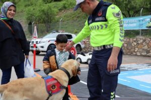 Jandarma Köpek Unsurlarının gerçekleştirdiği köpek gösterisi minikleri hem heyecanlandırdı hem de eğlendirdi. Ardından çocuklara “Tim Jandarma” adlı eğitici çizgi film izletildi. Etkinlik boyunca çocukların mutluluğu yüzlerinden okundu.