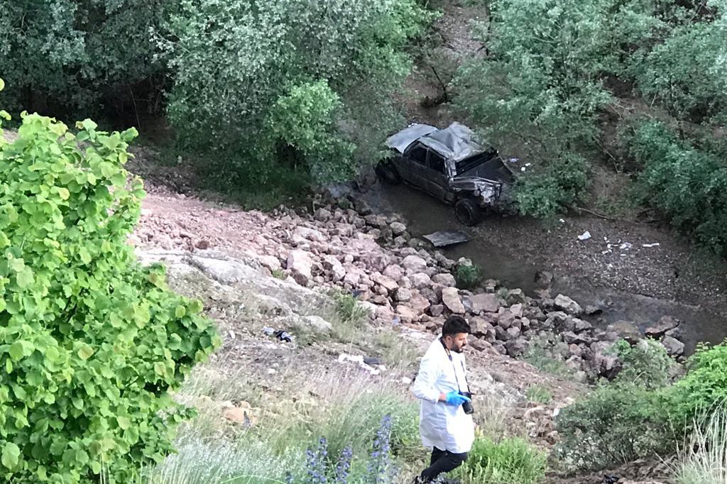 Kazada 150 metrelik uçurumdan dere yatağına yuvarlanan araç hurdaya dönerken, araçta bulunan Osman Tekin hastanede tedavi altına alındı.
