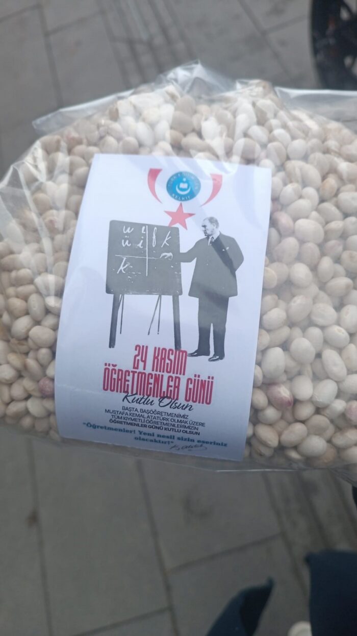 Gümüşhane’nin Kelkit ilçesinde Kelkit Türk Eğitim-Sen 24 Kasım Öğretmenler Gününde öğretmenlere dünyaca ünlü Kelkit Kuru Fasulyesi hediye etti.