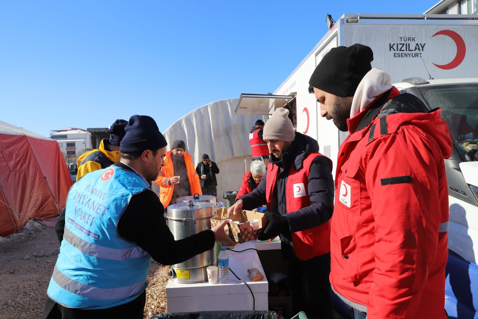 Deprem sonrası bölgeye Kızılay profesyonel ve gönüllüleri, sahada 961 profesyonel ve günlük 4 bin 565 gönüllüsü ile çalışmalara destek veriyor. Kızılay 86 ikram aracı, 320 mobil mutfak, 33 mobil fırın, 22 sahra mutfak ve 330 diğer araçlar olmak üzere bölgede toplamda 791 araçla hizmet veriyor. Ayrıca 5 Kızılay aşevin afetzedelere düzenli olarak yemek çıkarılıyor. Kızılay koordinesindeki Beslenme Platformu ise şimdiye kadar yaklaşık 4.5 milyon kişilik çorba, 20 milyon kişilik sıcak yemek, 22 milyon ekmek dağıttı. Ayrıca, 10 milyondan fazla ikramlık malzeme ve 15.5 milyon adet su ile 2 milyondan fazla içecek dağıtımı gerçekleştirdi.