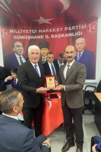 Milliyetçi Hareket Partisi (MHP) Gümüşhane İl Başkanlığına atanan Mete Kaya ile milletvekili aday adayı olmak için istifa eden Nadim Aydın arasında devir teslim töreni yapıldı.