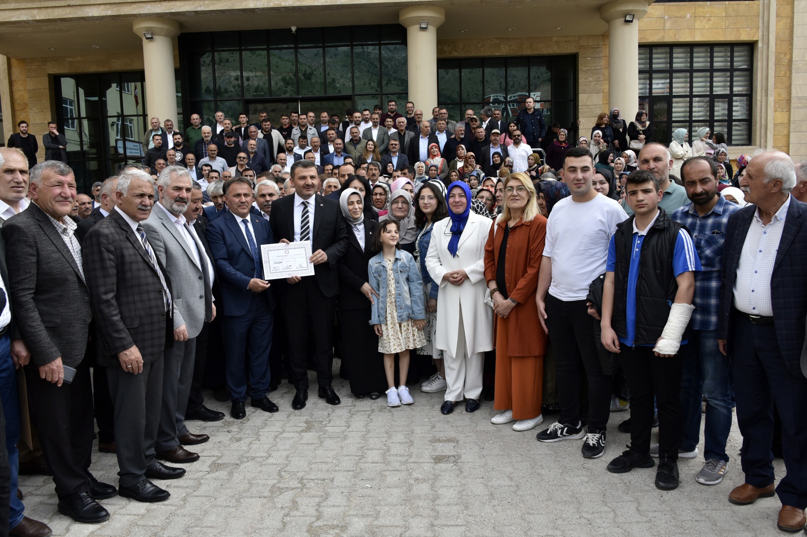 Törene Belediye Başkanlığı’nın makam aracı Türkiye’nin yerli ve milli otomobili TOGG’un şoför koltuğunda gelen Köse, il, ilçe, teşkilat ve Belediye Başkanlarıyla İl Seçim Kurulu Başkanı Garip Aykanat’tan mazbatasını aldı.