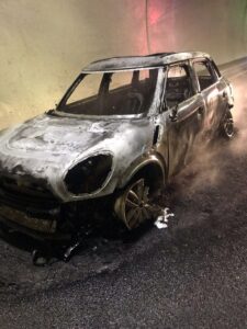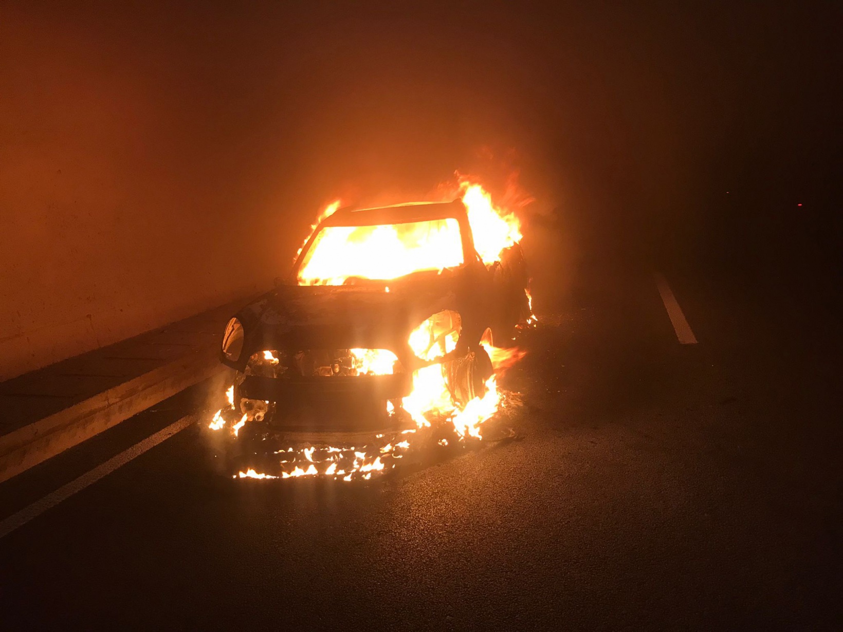 Avrupa ve Türkiye’nin en uzun, dünyanın 3.en uzun tüneli olan yeni Zigana tünelinde hareket halindeki otomobil birden alev aldı. Sürücünün söndürmeye çalıştığı otomobil küle döndü.