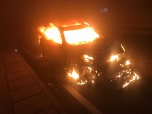 Hemen aracını durdurarak terk eden Uçan, birdenbire alev topuna dönen otomobilini söndürmeye çalışsa da gözlerinin önünde otomobili küle döndü.