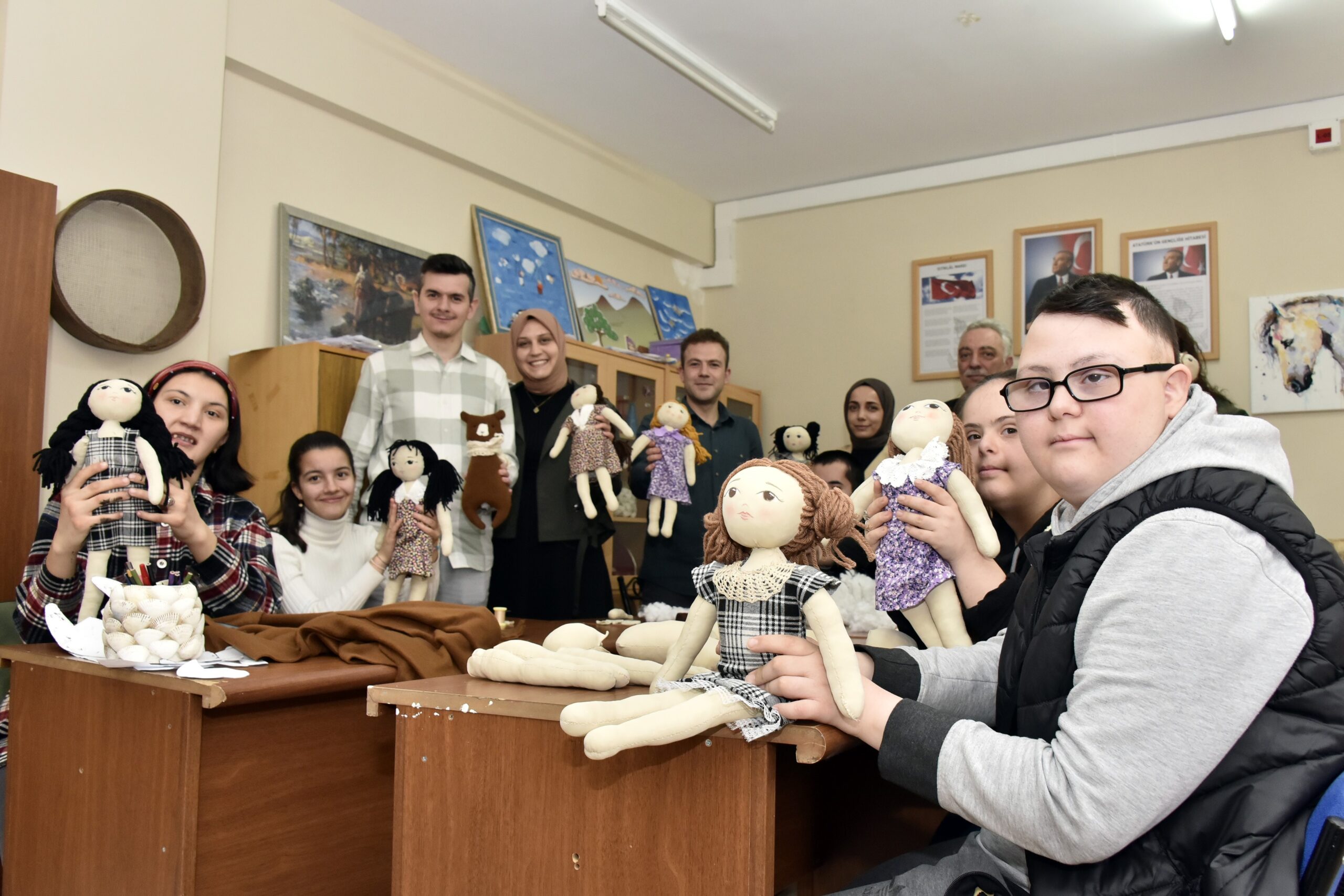 En başından sonuna tamamen el emeği olduğu için günlük ortalama 3 tane bebek yapabilen özel öğrencileri ziyaret ederek Okul Müdürü Gürsoy Çavuşoğlu ve öğretmenlerden bilgi alan İl Milli Eğitim Müdürü Metin Yalçın, özel gereksinimli çocukları yaptıkları çalışma için tebrik etti.
