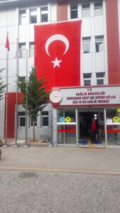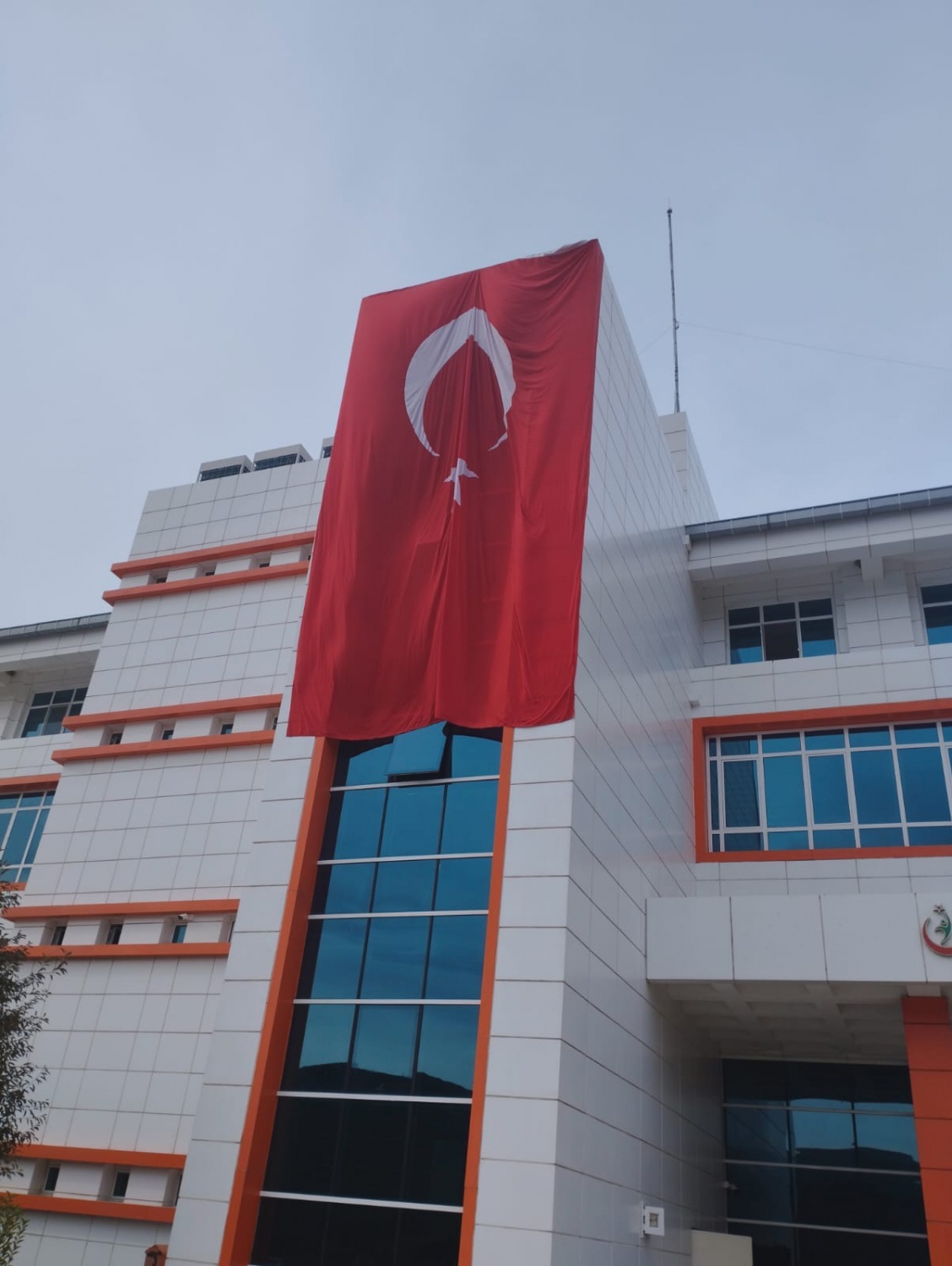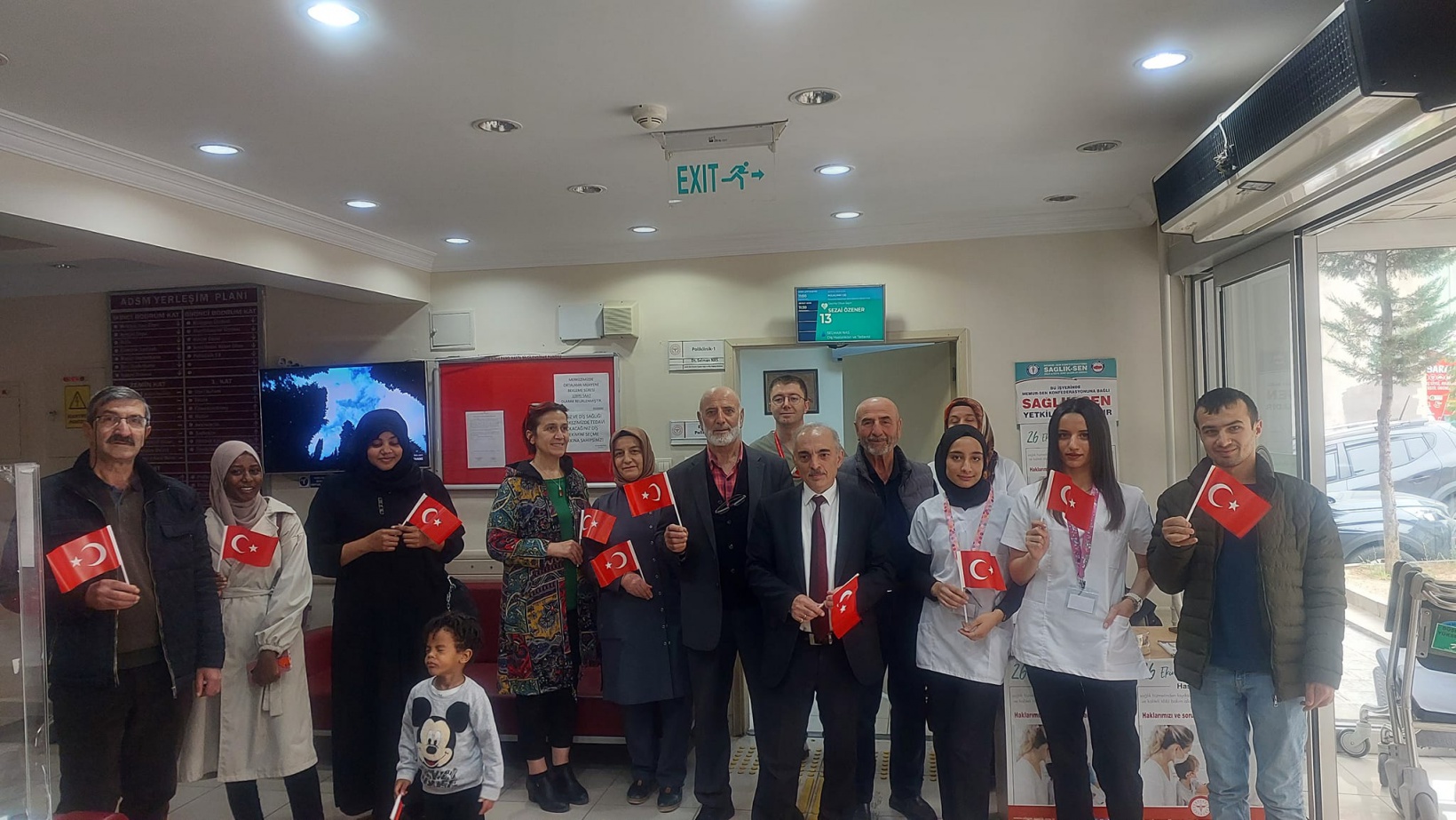 Gümüşhane İl Sağlık Müdürlüğü, Cumhuriyetin 100.yılında tüm sağlık tesislerini bayraklarla donattı, hasta ve çocuklara bayrak dağıttı.