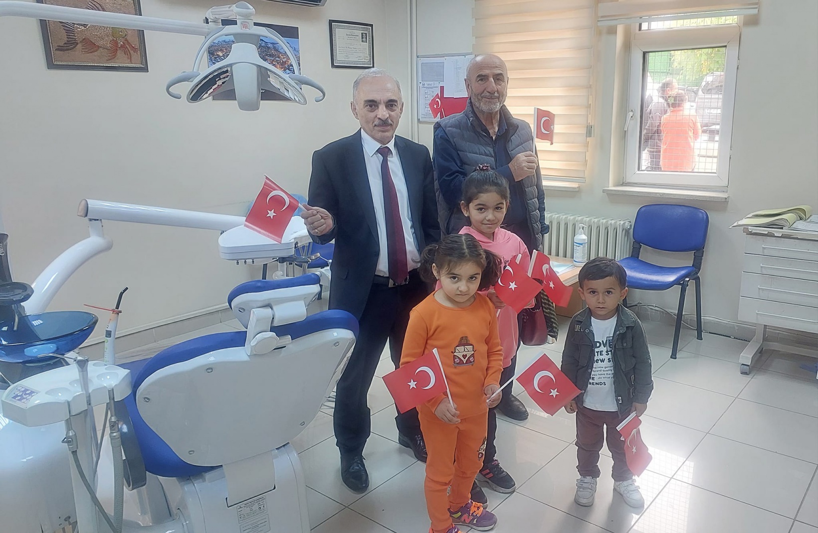 Gümüşhane Şehit Ebe Kevser Ceylan Ağız ve Diş Sağlığı Merkezi ise Türkiye Cumhuriyeti’nin kuruluş tarihi olan 29 Ekim 1923’e vurgu yaparak diş tedavisi için polikliniklere başvuran yetişkin ve çocuk hastalara 1923 adet bayrağı dağıtmaya başladı.