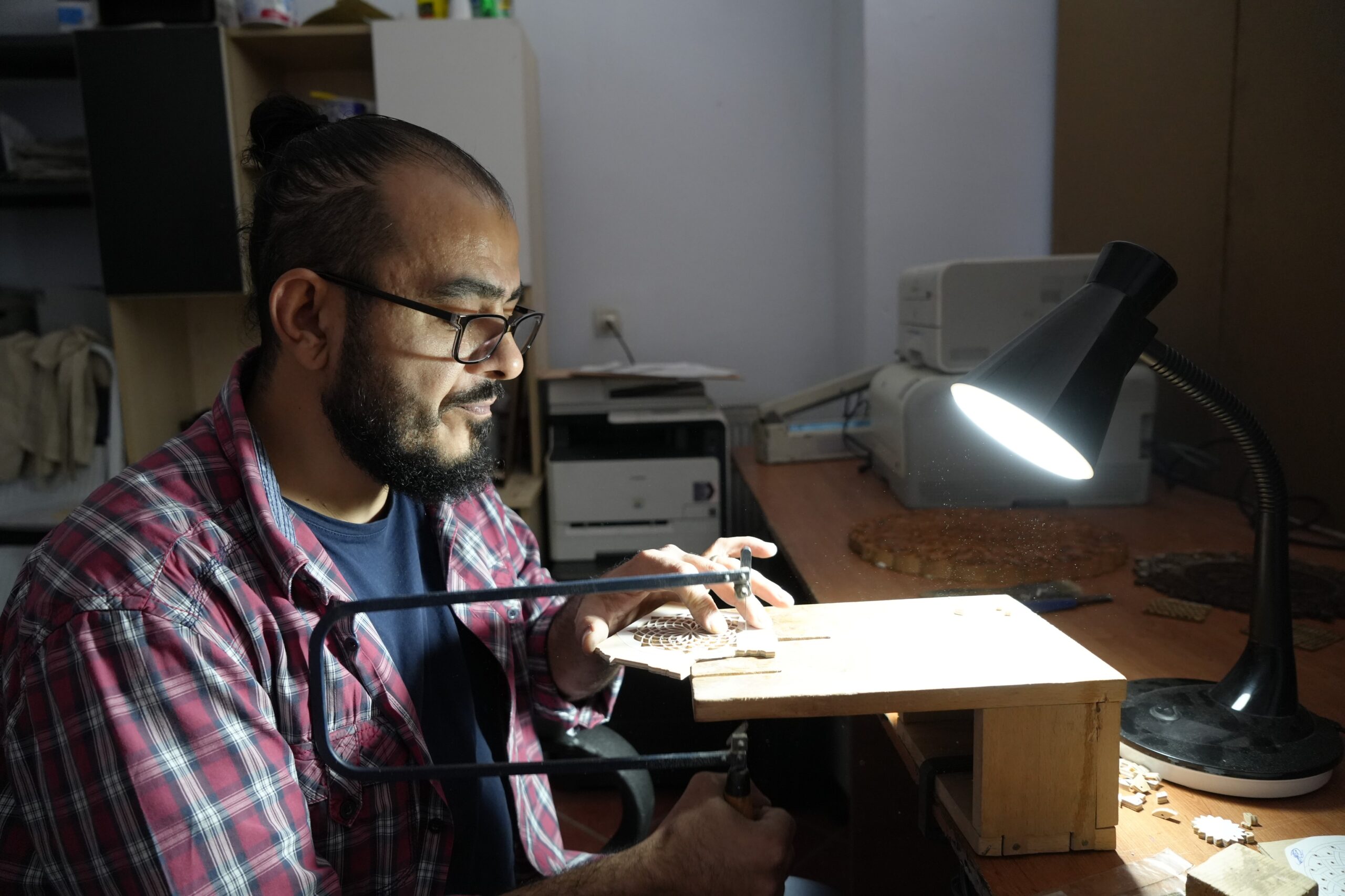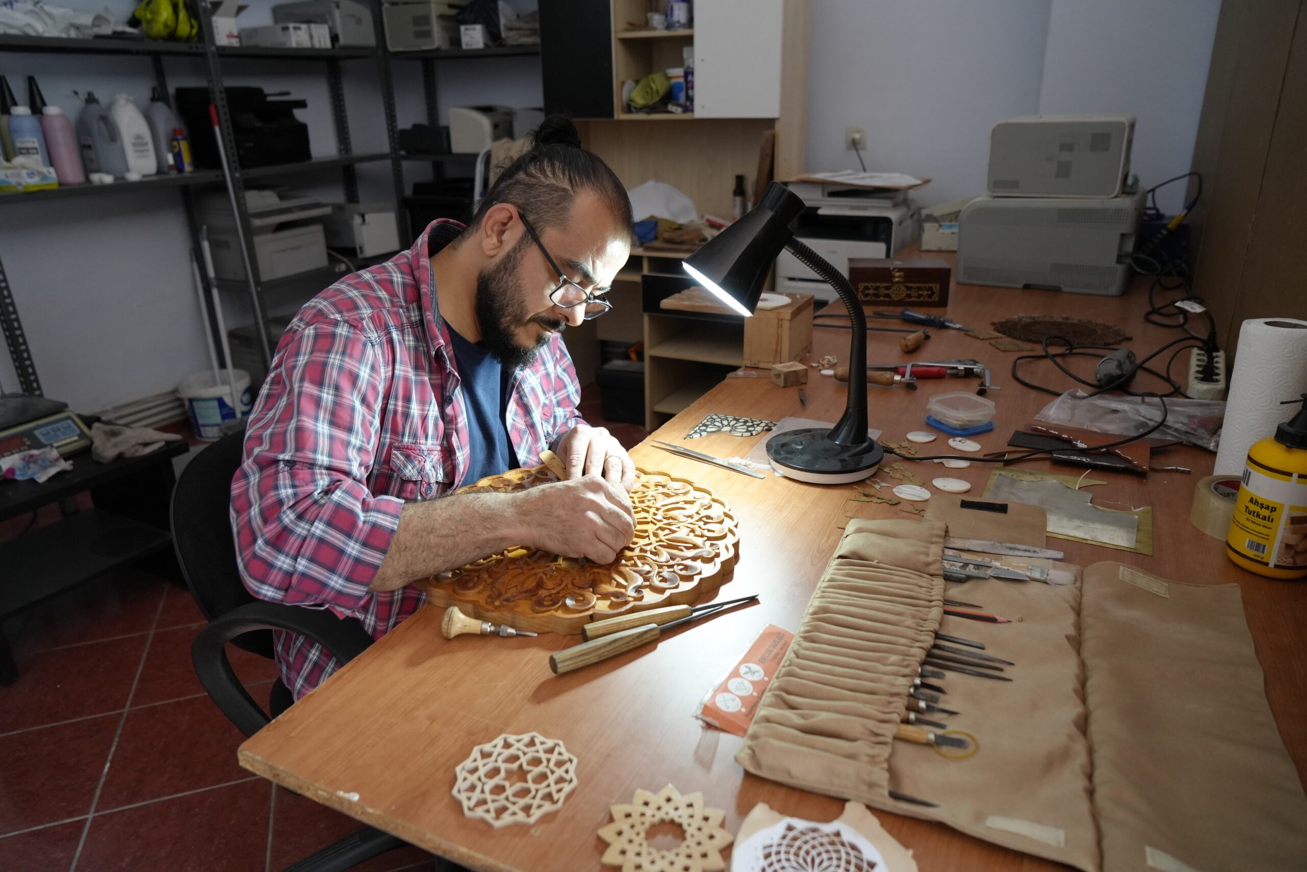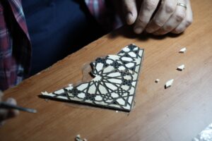 İş yerinde hazırladığı atölyede Mimar Sinan’ın da mimarlığa başladığı dönem yaptığı Sedef Kakma Sanatını icra eden Öztürk, ustalarından öğrendiklerini gelecek nesillere aktarmak için çaba sarf ediyor.