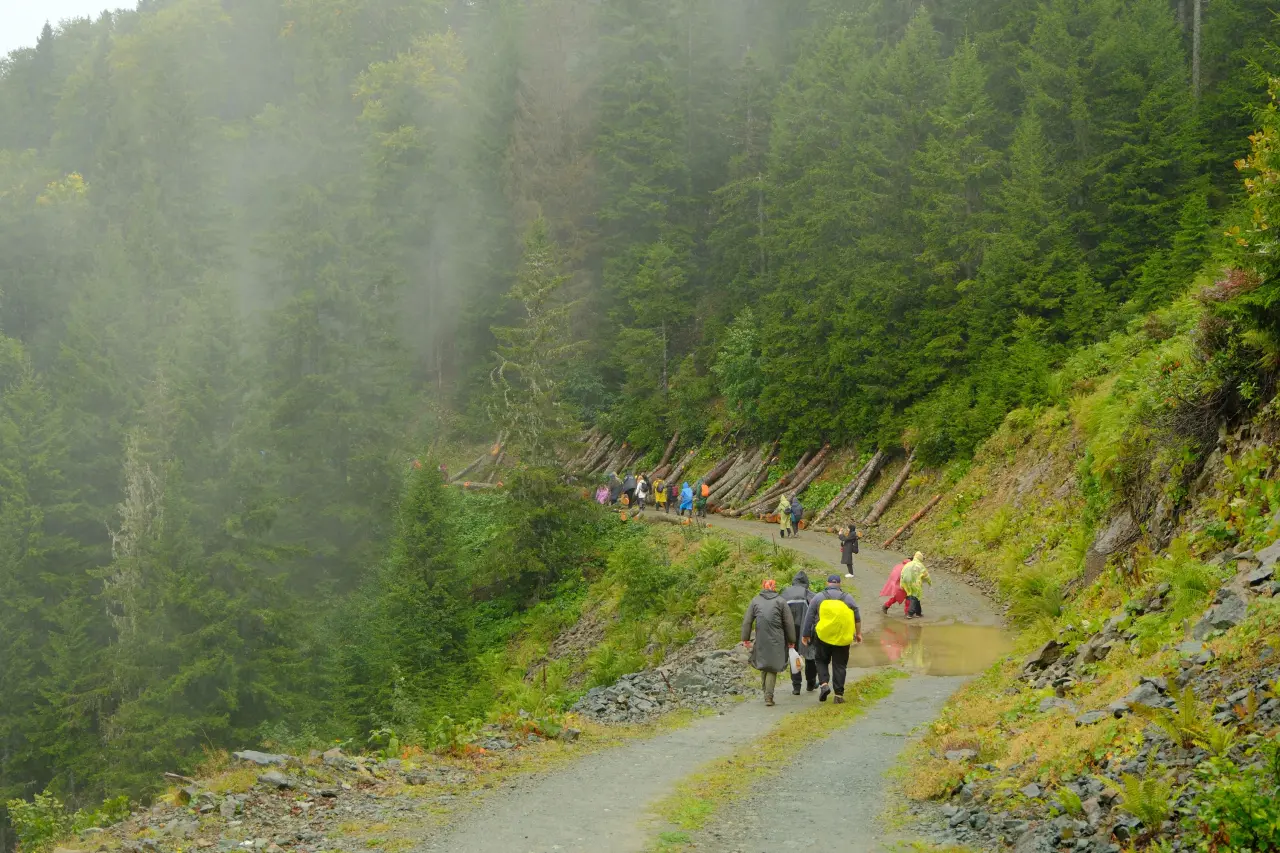 Genelde yağmur altında gerçekleşen yürüyüşte zaman zaman sıyrılan bulutların ardından eşsiz orman ve sis manzaralarını izleyen sporcular, kardelen çiçekleri arasında ormanlık kesimdeki yürüyüşlerinde önlerine çıkan likarpaları (Yaban mersini) yağmura aldırmadan topladı.