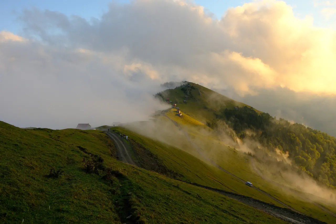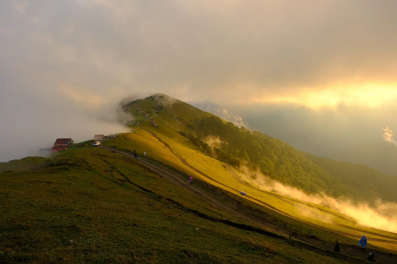 Akşam saatlerinde otantik atmosferi ve huzurlu ortamıyla ziyaretçilerine unutulmaz bir deneyim sunan Çetlüce Yaylasına ulaşan ekipler, bu sırada bulutların dağılmasıyla birlikte eşsiz gün batımı manzarasına şahitlik yaptı.