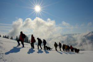 Sabahın erken saatlerinde Taşlıca köyüne ulaşan ekip, köyün üst yamacından başlattıkları yürüyüşte kendilerini adeta bir kış masalının içinde buldu. Bir yanda dizlere kadar yükselen kar, diğer yanda vadileri saran sis bulutları ve tepelerin ardından süzülen güneş ışıkları sporcuları büyüleyici bir atmosferin içine çekti.