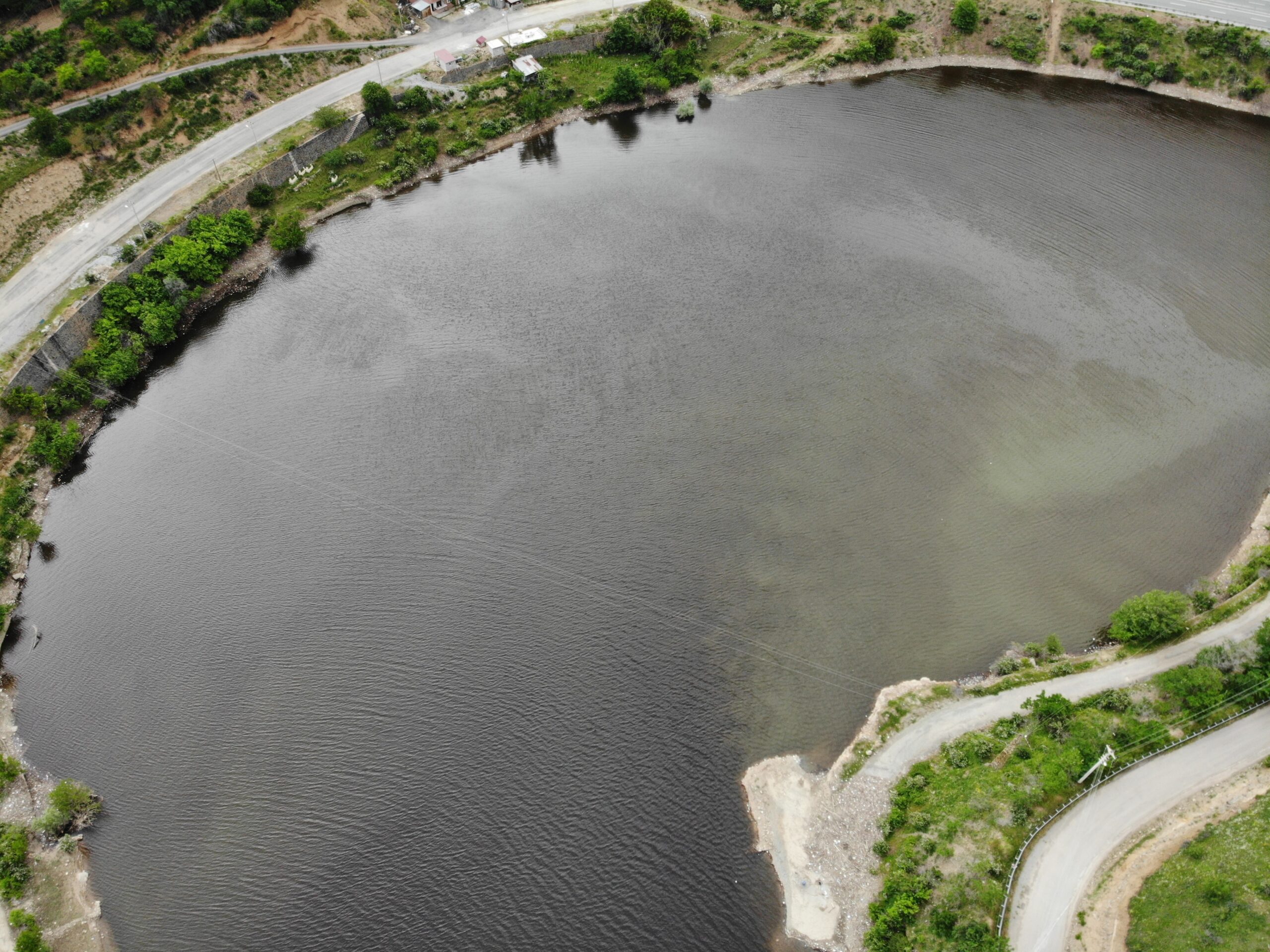 Torul ilçesinde bulunan Torul Baraj Gölü’nde, son günlerde su yüzeyini kaplayan yoğun koyu tabaka dikkat çekiyor.