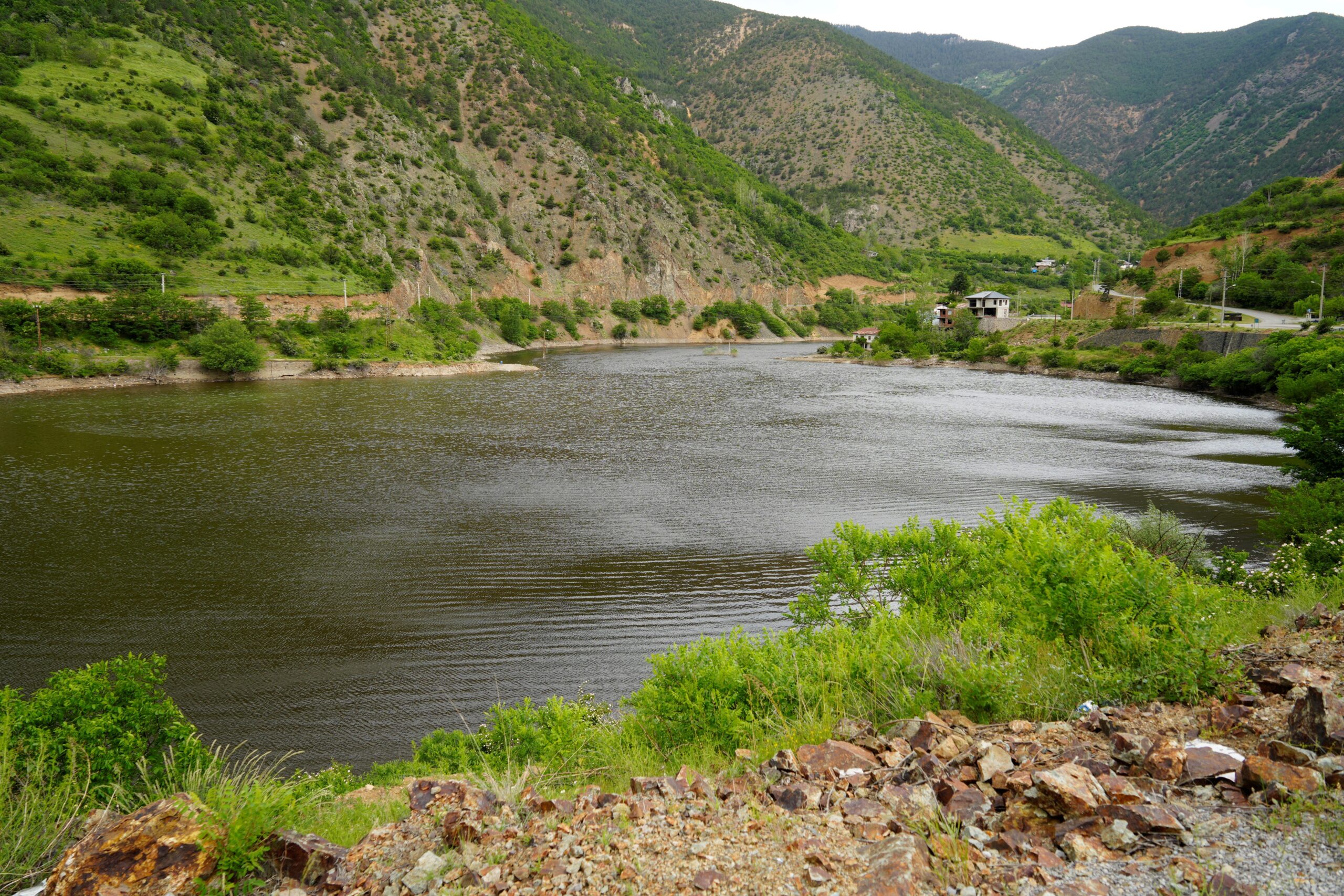 Gümüşhane’deki Torul Baraj Gölü’nde mayıs ayıyla birlikte alg patlaması meydana geldi, su yüzeyi koyu bir tabaka ile kaplandı.