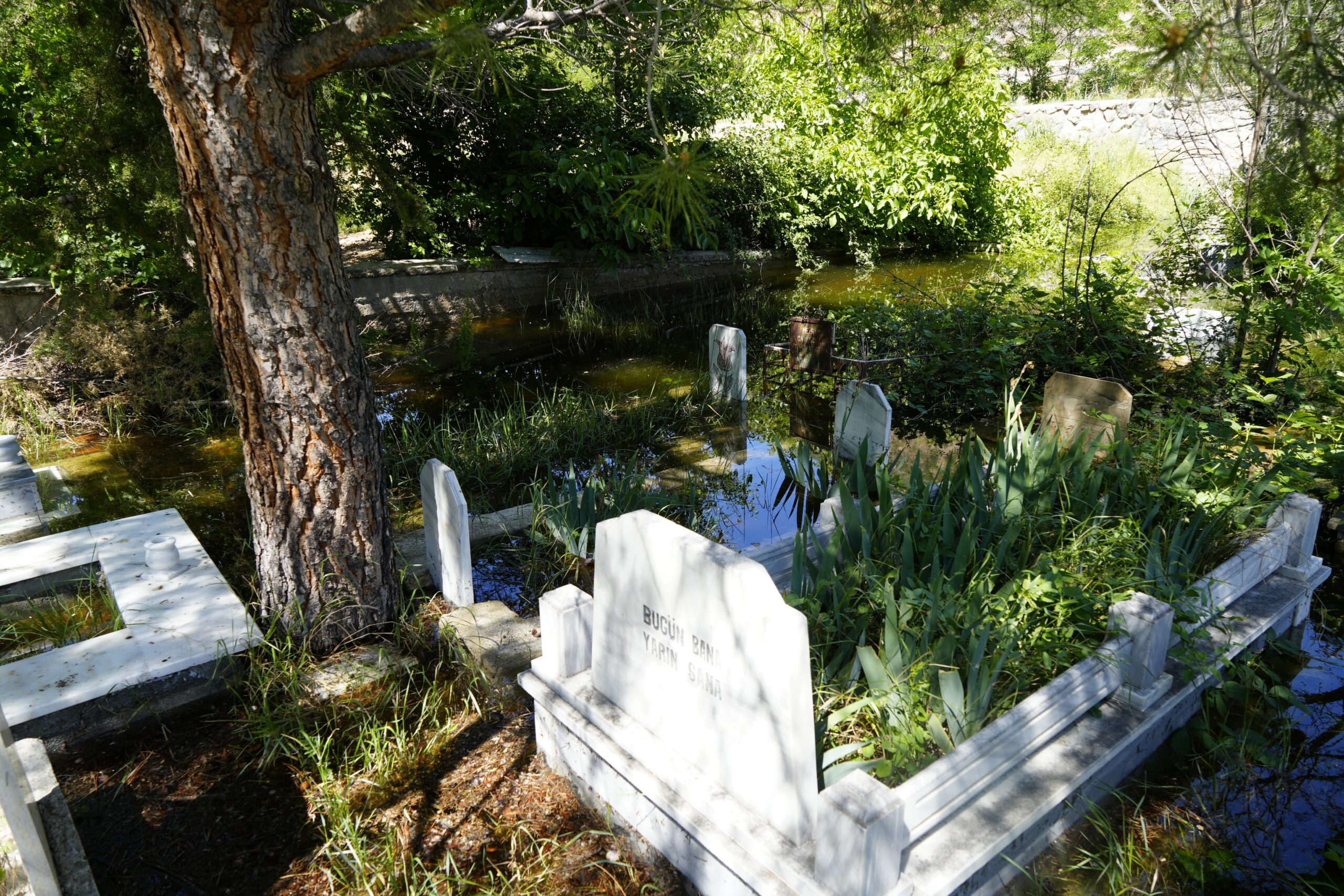 Yakınlarının mezarlarının sular altında kaldığını gören mahalle sakinleri ise büyük üzüntü yaşıyor.