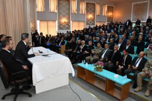Bu noktada hem köy hem de mahalle muhtarlarından kendilerine yardımcı olmalarını isteyen Vali Baruş, “Neslimizi güvende tutabilmek için öncelikle çocuklarımızı, gençlerimizi bir takım zararlı etkilerden uzak tutmamız gerekiyor. Bunun için de el birliğiyle gayret göstermemiz gerekiyor. Madde bağımlılığı konusu günümüzün belalarından, en önemli belalarından birisi. Terör kadar tehlikeli bir bela. Çocuklarımızı, gençlerimizi bu şer niyetli kişilerin kötü niyetlerinden uzakta tutabilmek için bazı konularda farkındalığımız yüksek olması lazım. Tedbirleri zamanında almamız lazım. Sokağımıza, caddemize sahip çıkmamız lazım. Köyümüze sahip çıkmamız lazım. Her şeyden haberimiz olması lazım. Kulağımız delik olması gerekiyor. Burada birlikte çalışmak çok önemli. Polisimizle, jandarmamızla, muhtarlarımızın çok yakın çalışması çok çok önemli. Biz yakın çalışırsak başarı elde edebiliriz” diye konuştu.