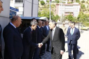 Torul ilçesinde Hükümet Konağı önünde Kaymakam Muhammet Kılıçaslan ve ilçe protokolü tarafından karşılanan Vali Tanrısever, makamında ziyaret ettiği Kaymakam Kılıçaslan’dan ilçede devam eden çalışmalar hakkında bilgi aldı.