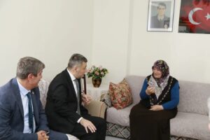 Vali Tanrısever programının sonunda şehit öğretmen Necmettin Yılmaz’ın Torul ilçe merkezindeki ailesini ve Şehit Polis Memuru Serdar Oğur’un ailelerini ziyaret etti.